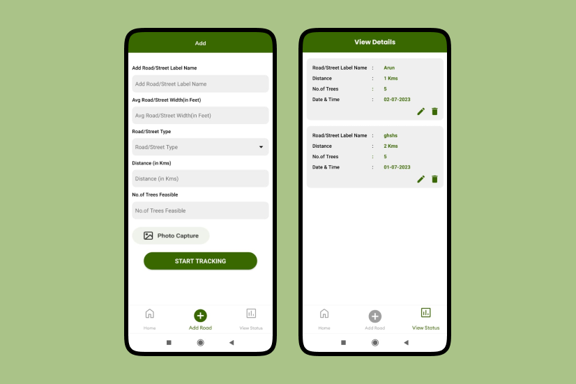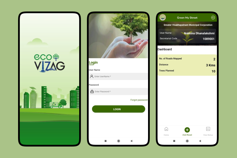 Imagine a vibrant city, where every street breathes with green life! The Green My Street app is on a mission to turn this dream into reality. This app is a crucial part of the Eco Vizag campaign, a remarkable initiative by the Greater Visakhapatnam Municipal Corporation (GVMC) in Andhra Pradesh. The primary goal of this campaign is to inspire and empower the public to actively combat air and plastic pollution by fostering fresh greenery in their city. The Green My Street app boasts a user-friendly interface. The app will be used by the different secretaries of the city who will be provided with login credentials. Once they logged in to the app they will be directed to a home screen where the users can find their name and unique ULB number, The home screen also provides a dashboard with real time data which includes the number of roads mapped, distance covered and the trees planned.